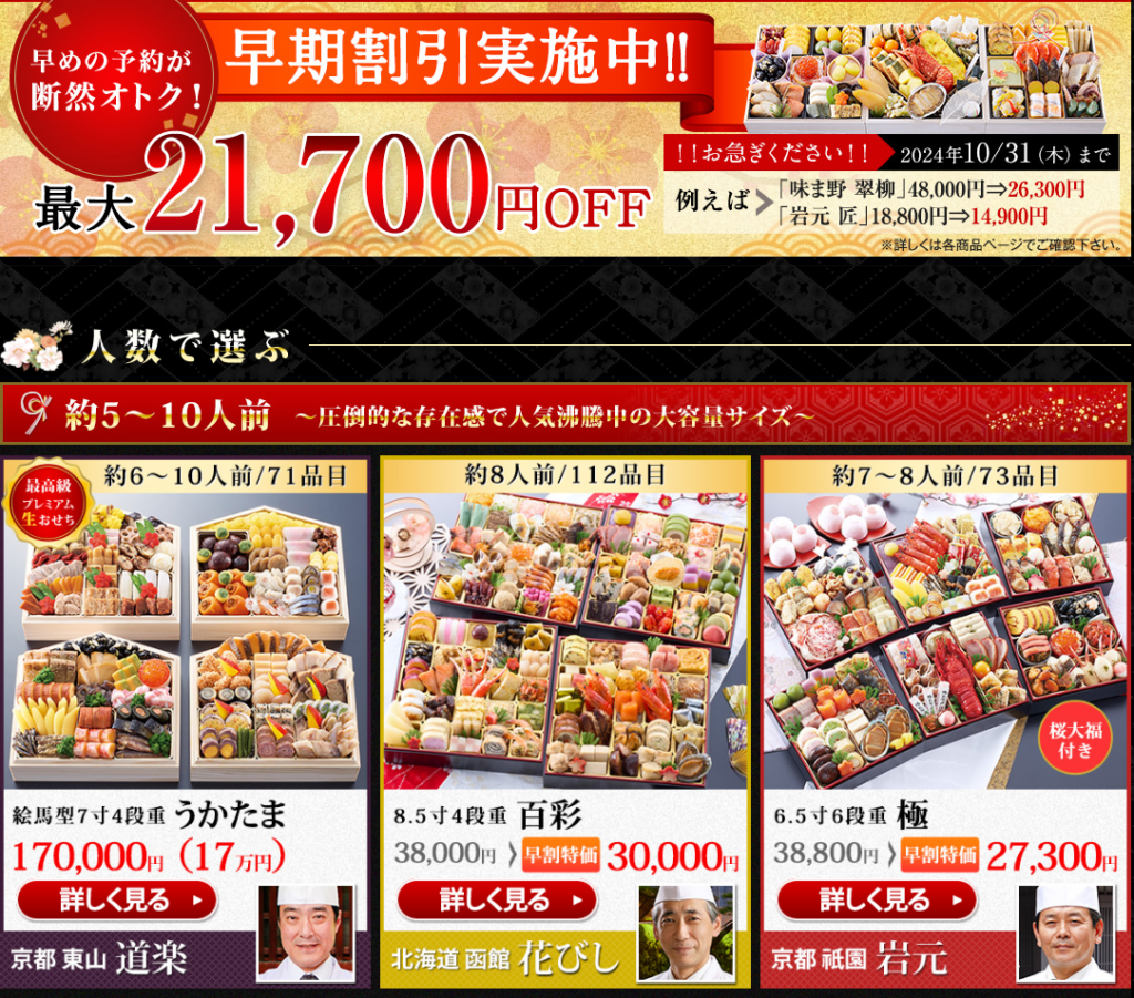 匠本舗はおせち販売実績370万個以上!顧客満足度94%以上!