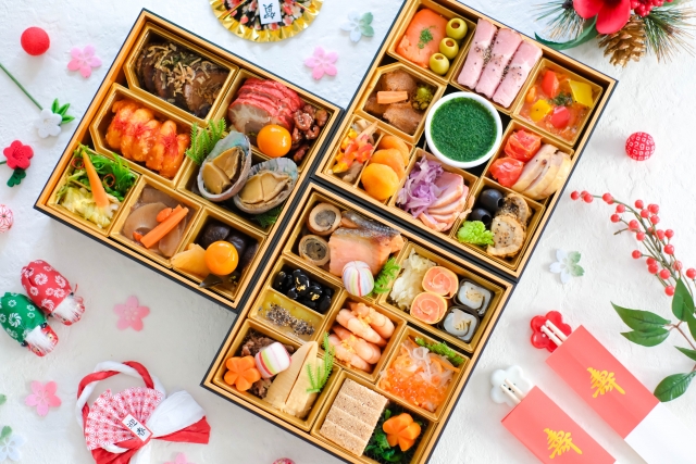 現在では、家庭で手作りする人もいますが、スーパーやデパートなどでお節料理のセットを購入することも一般的です。