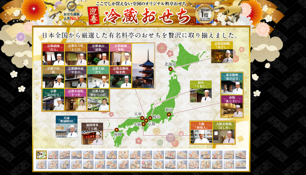 匠本舗のおせち通販は、全国の有名料亭25店から50種類のおせちを販売予定。