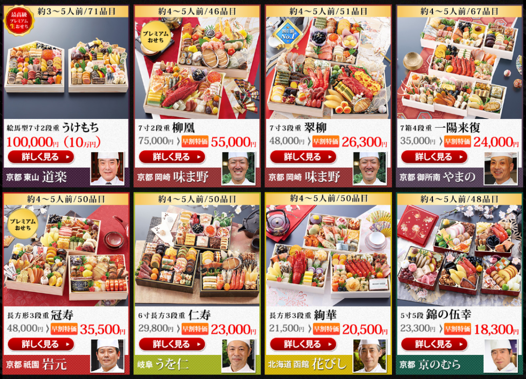 高級なお節セットは価格が高くなりがちです。特にデパートなどで販売されるブランドお節は1万円以上することも珍しくありません。 - 好みが合わないことがある